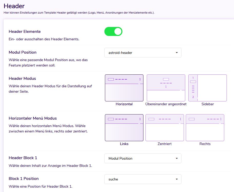 Sie haben mehrere Optionen zur Auswahl und können im Layout Manager problemlos zwischen den Headern wechseln.